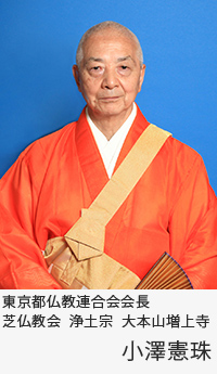 この度ご縁をいただき、東京都仏教連合会の会長に就任しました浄土宗大本山増上寺法主の小澤憲珠でございます。前会長の浅草寺田中昭德ご貫首の後任として大役を仰せつかりました。